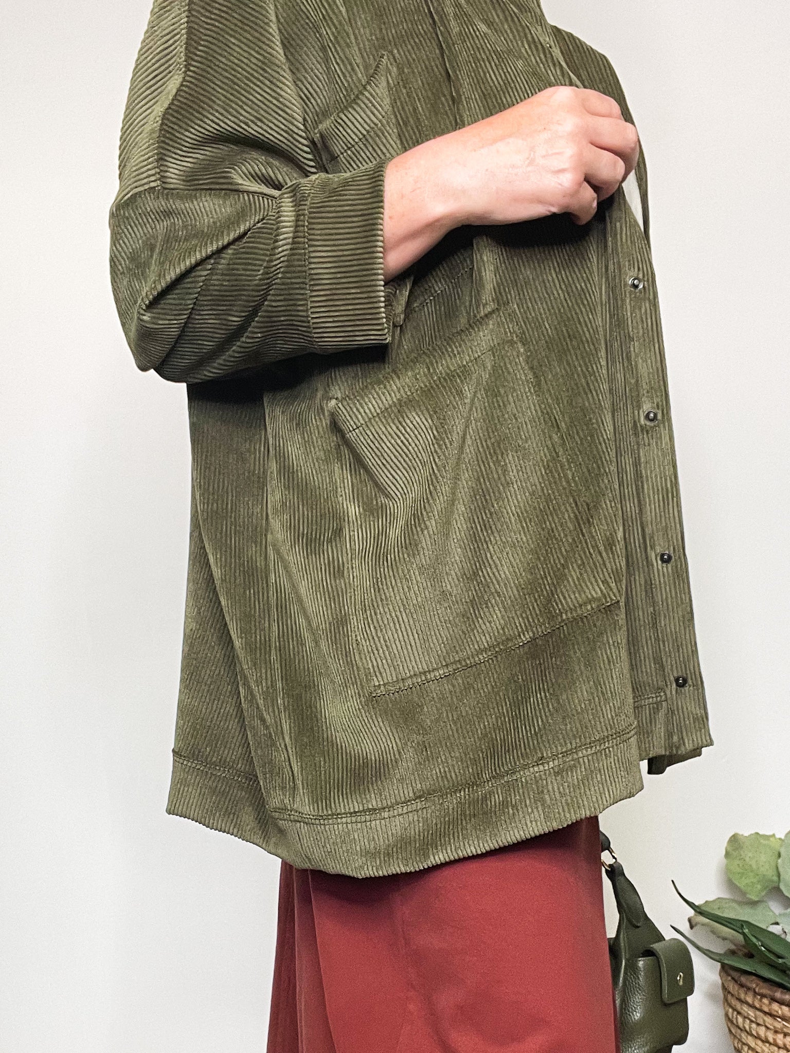 Un capo 2 in 1, pratico e versatile. Questa camicia in velluto a coste si presta a essere indossata da sola oppure come giacca leggera nelle mezze stagioni.
