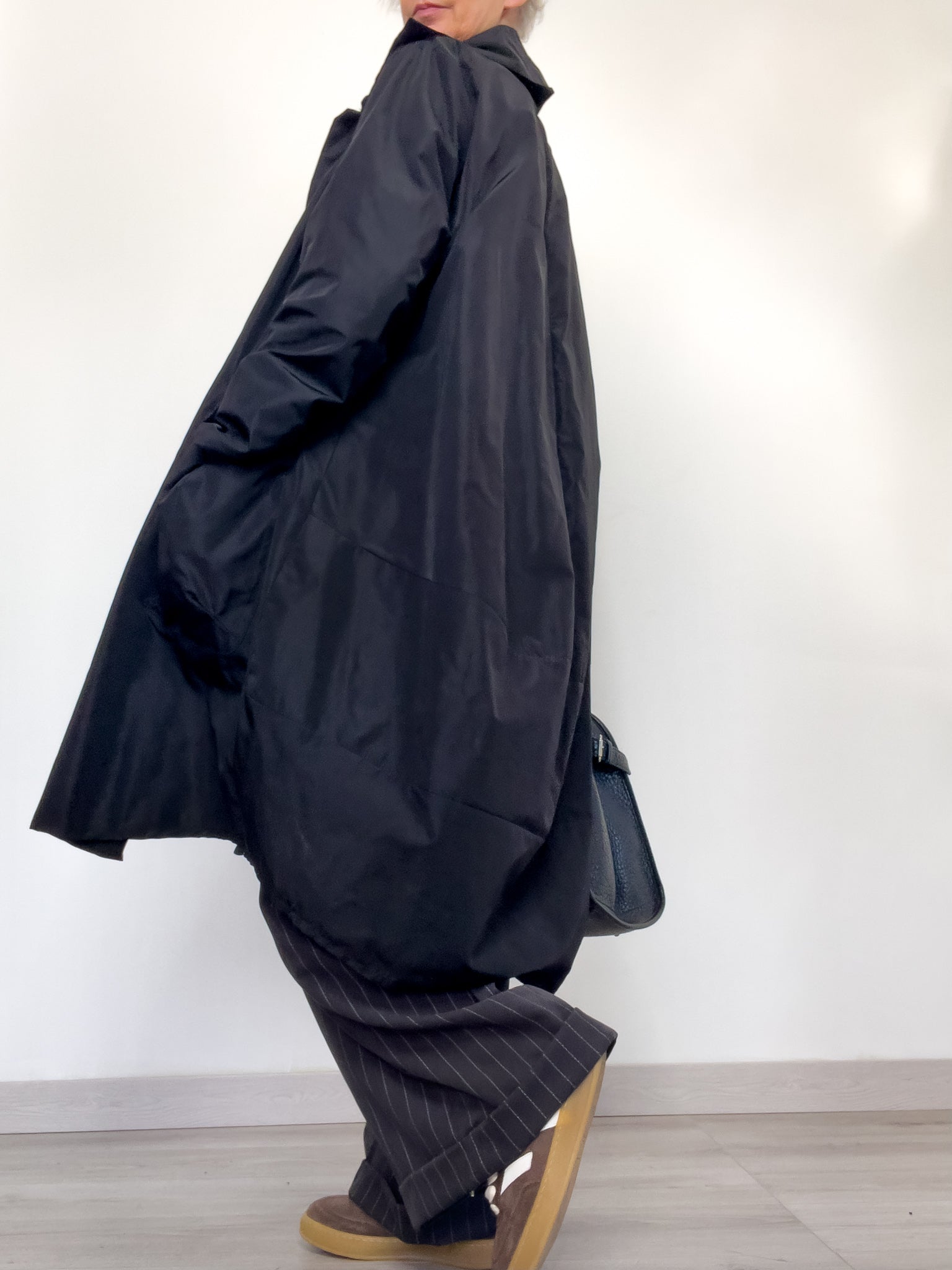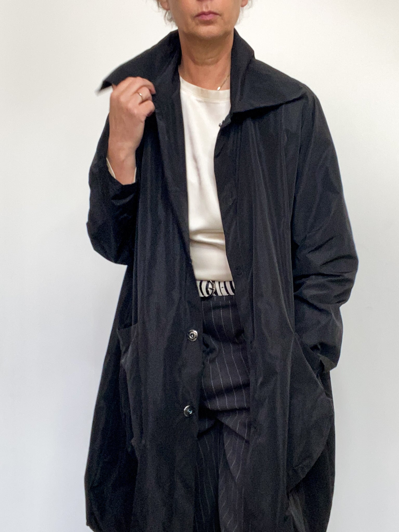 Perché unisce la funzionalità di un trench tecnico alla leggerezza di una camicia over. Ideale per la mezza stagione, da portare aperto o abbottonato, sopra outfit eleganti o quotidiani.