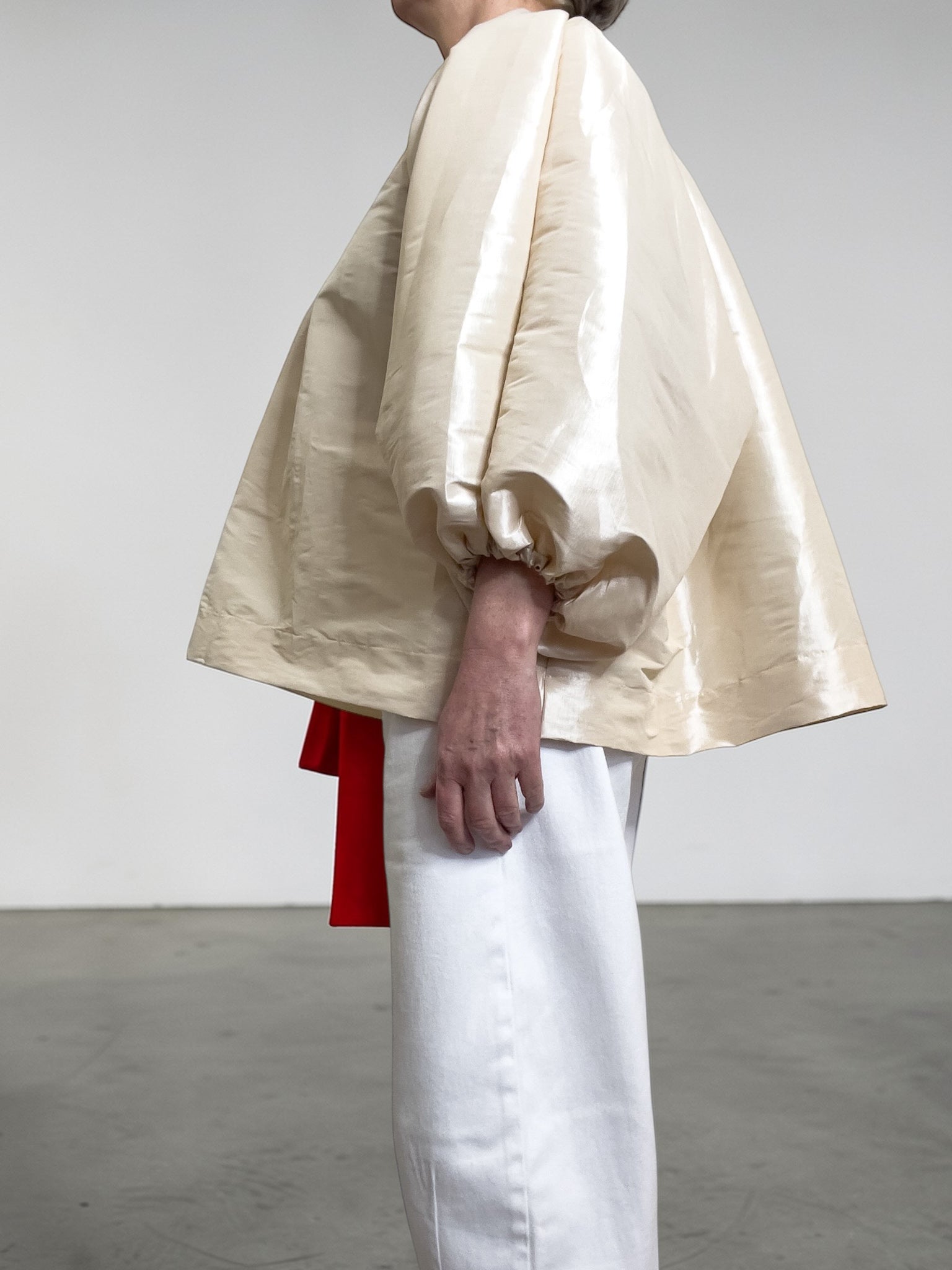 Una blusa scenografica e leggera, che dà forma al look con volume, luce e carattere.