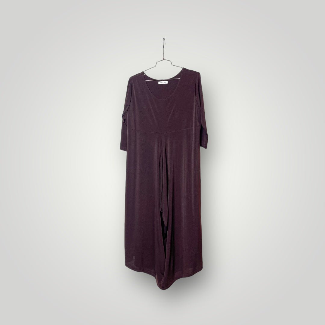 Abito morbido con drappeggio sulla parte anteriore e posteriore (vedi foto) che permettono di annodarlo creando un piacevole effetto.