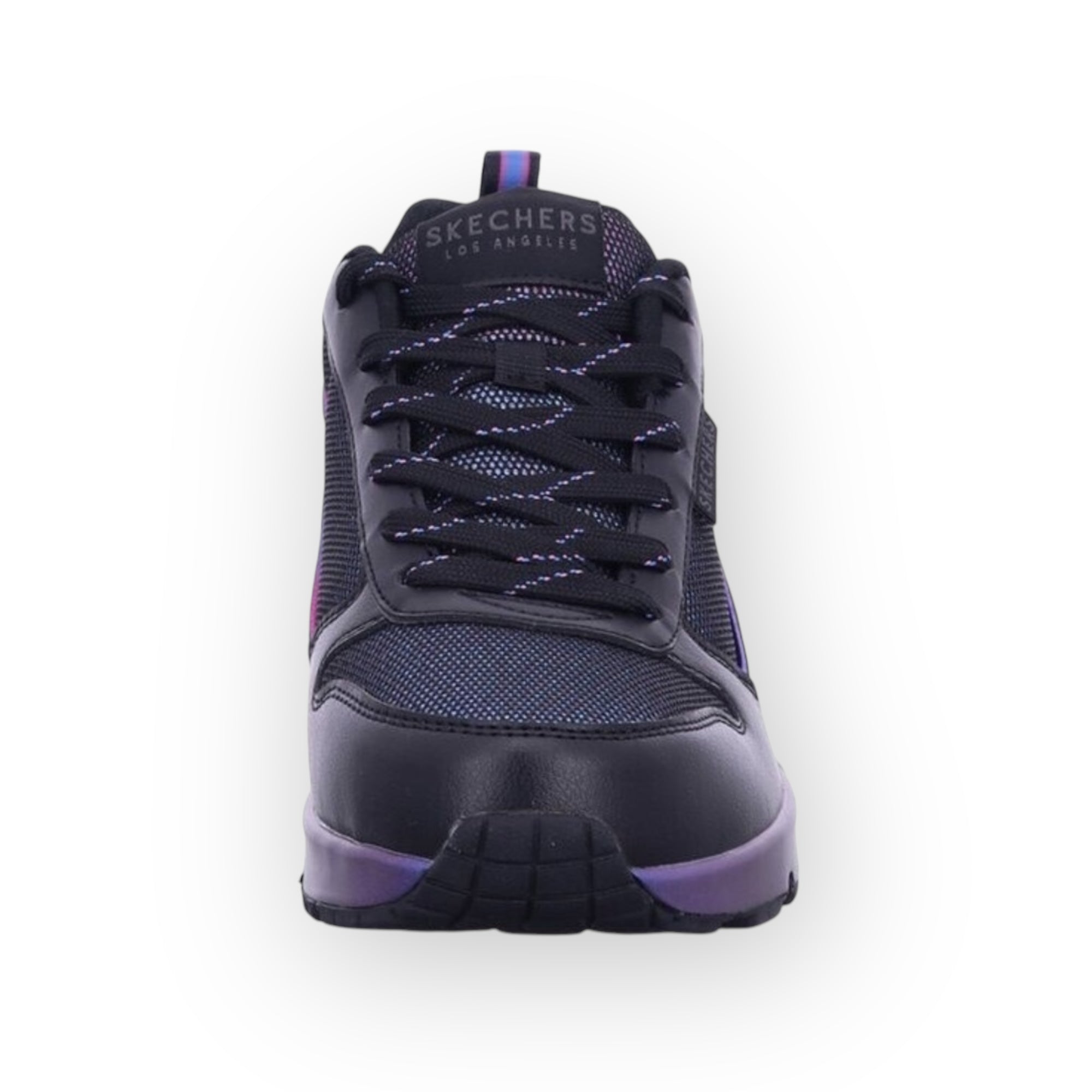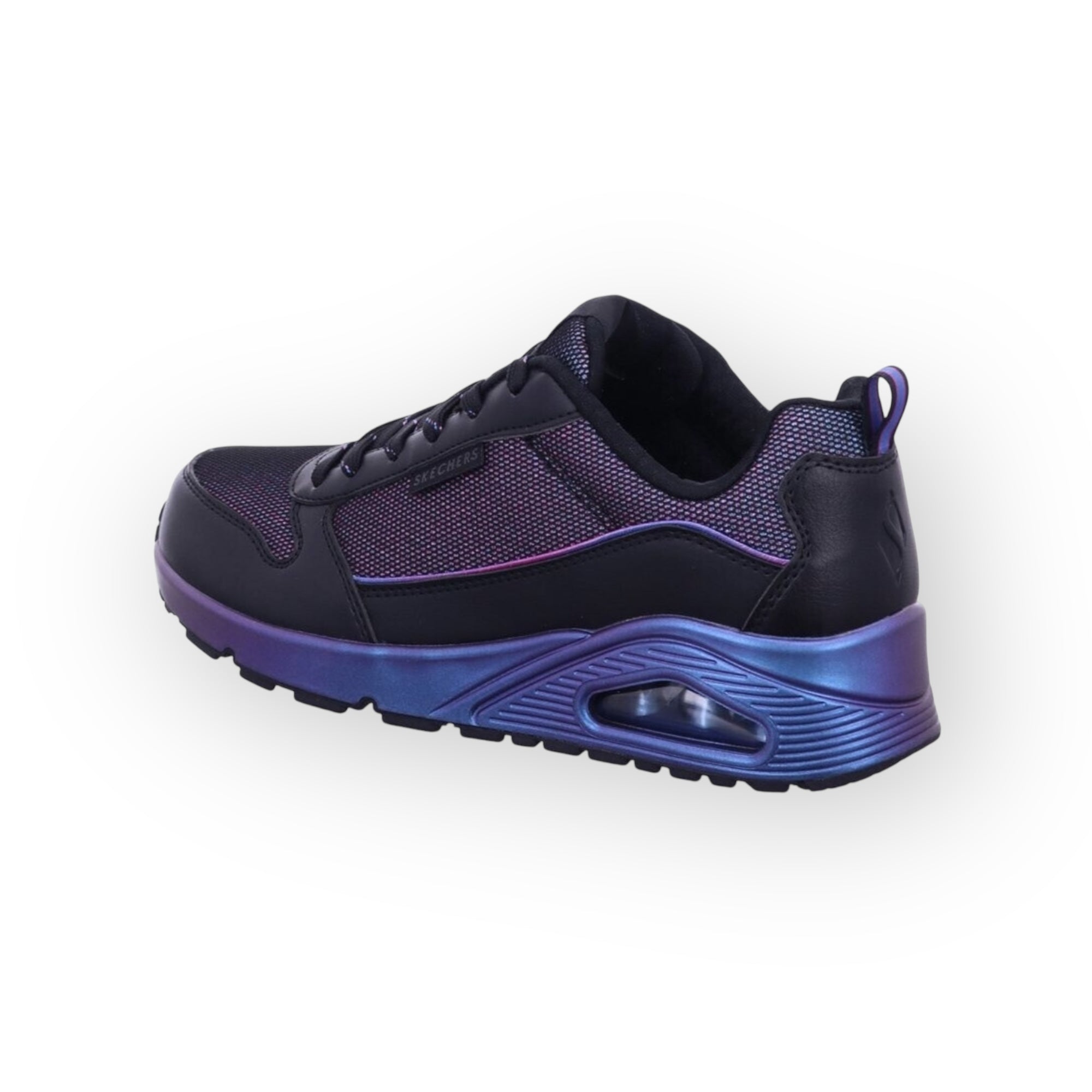 La sneaker Skechers Sparkle Lite 177855 accende ogni passo con riflessi cangianti e dettagli metallizzati che cambiano colore alla luce.